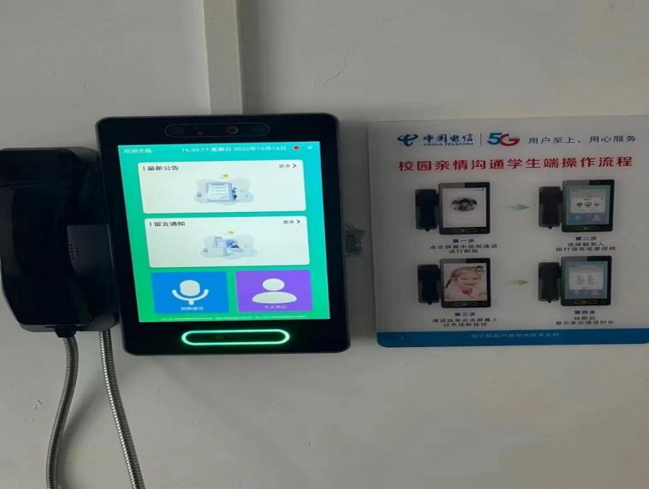 在学校公共区域安装视频电话机,根据学生的上课作息时间提供语音视频电话功能,建设效果图如下所示: